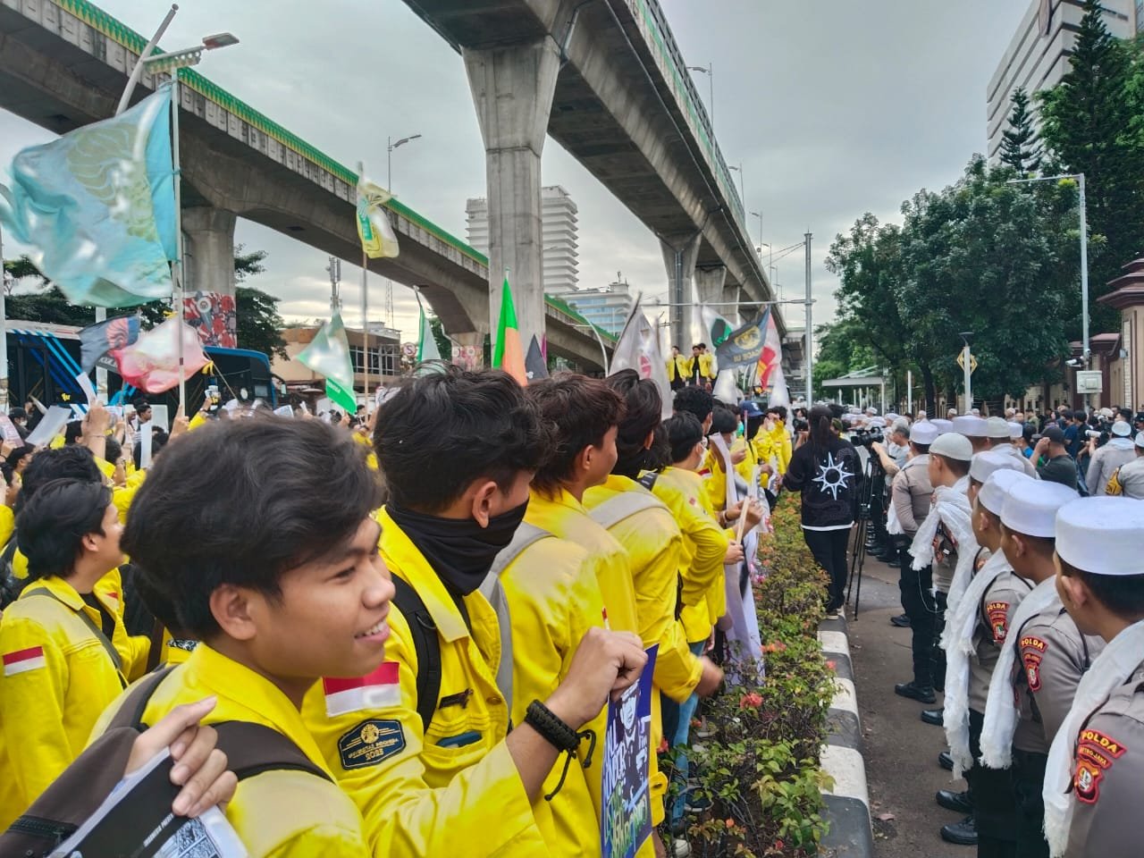 Dengan jumlah massa kurang lebih 400 mahasiswa yang berunjuk rasa di depan Mabes Polri, aparat kepolisian hadir dengan pendekatan yang lebih humanis tanpa barikade kawat berduri dan tanpa formasi represif yang menimbulkan kesan intimidatif.