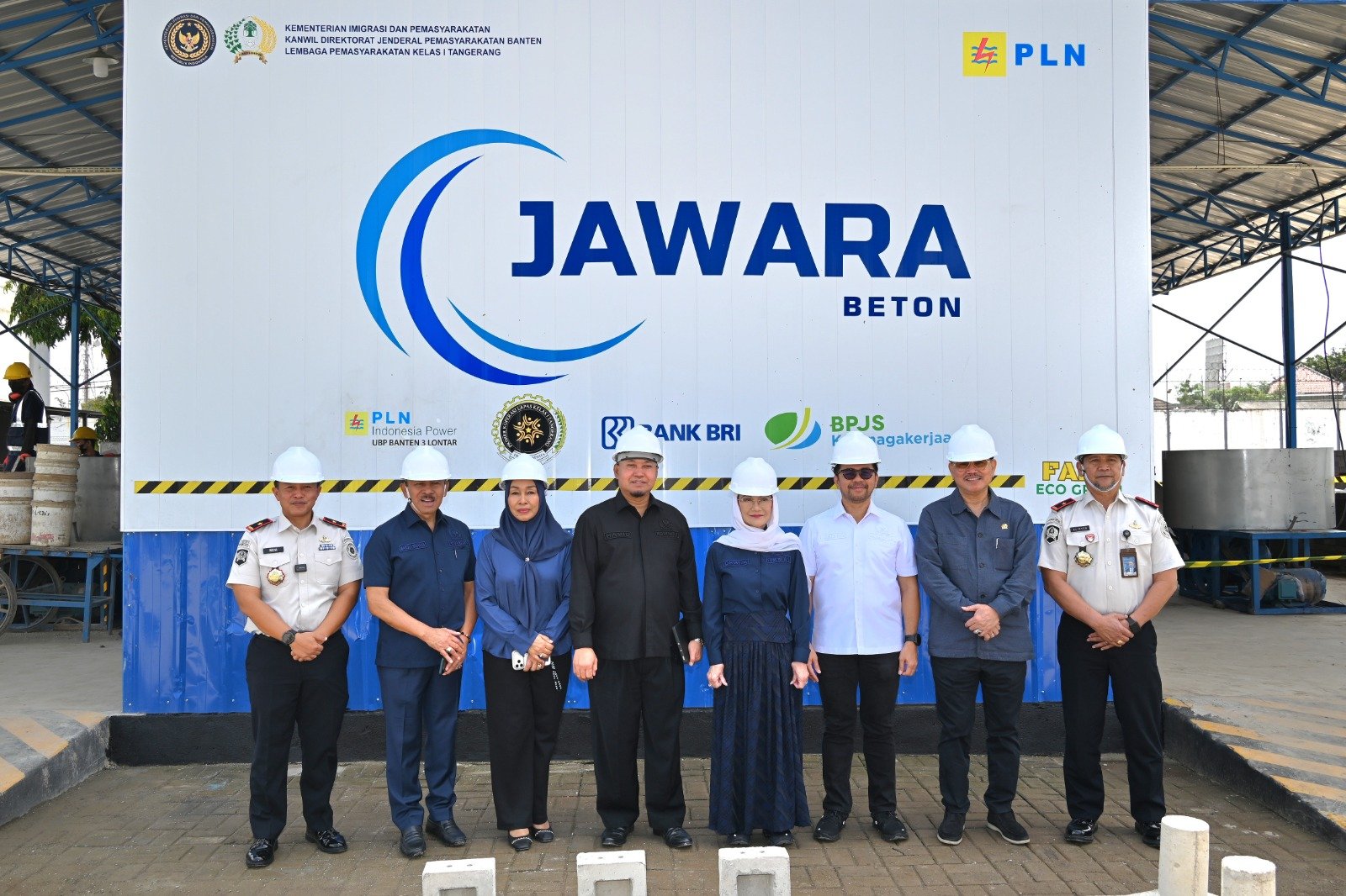 Selanjutnya, rombongan melanjutkan peninjauan ke area pembinaan kemandirian Jawara Beton yang menjadi salah satu program unggulan pembinaan di Lapas Kelas I Tangerang. Program ini memberikan pelatihan keterampilan produksi material konstruksi kepada Warga Binaan dengan melibatkan mereka secara langsung dalam setiap tahapan produksi, mulai dari pengolahan bahan baku, pencetakan, hingga tahap akhir produk. Melalui program tersebut, Warga Binaan tidak hanya memperoleh pelatihan keterampilan, tetapi juga pengalaman praktik kerja yang diharapkan dapat menjadi bekal kemandirian setelah kembali ke masyarakat.
