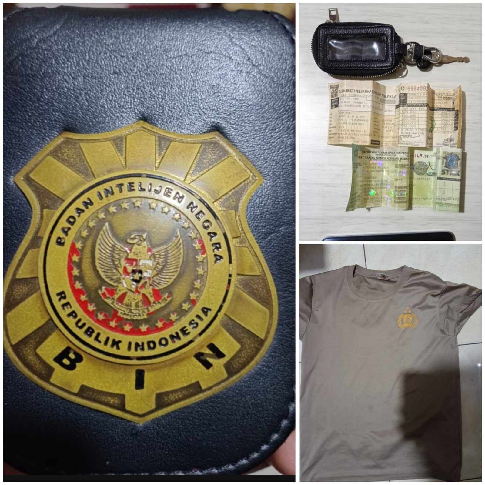 Dari tangan pelaku, polisi mengamankan sejumlah barang bukti berupa borgol, pakaian menyerupai atribut polisi, tanda pengenal, satu unit mobil, serta handphone yang digunakan dalam aksi pemerasan.