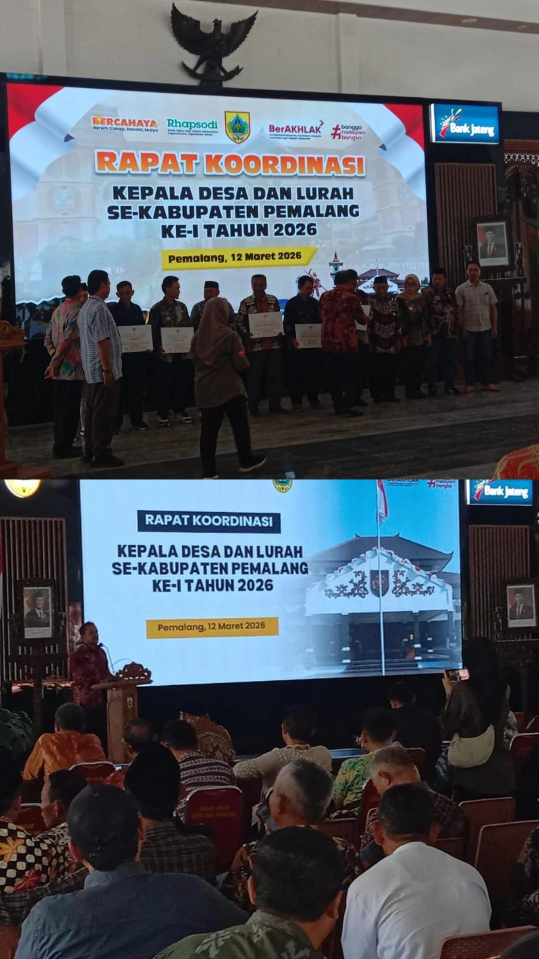 Pemalang – Memasuki tahun 2026 dan menjelang Idul Fitri 1447 H / 2026 M , Pemerintah Kabupaten Pemalang menggelar Rapat Koordinasi Kepala Desa dan Lurah yang dilaksanakan pada hari Kamis 12 Maret 2026 pada pukul : 09 : 00 WIB bertempat di Pendopo Kabupaten Pemalang.
